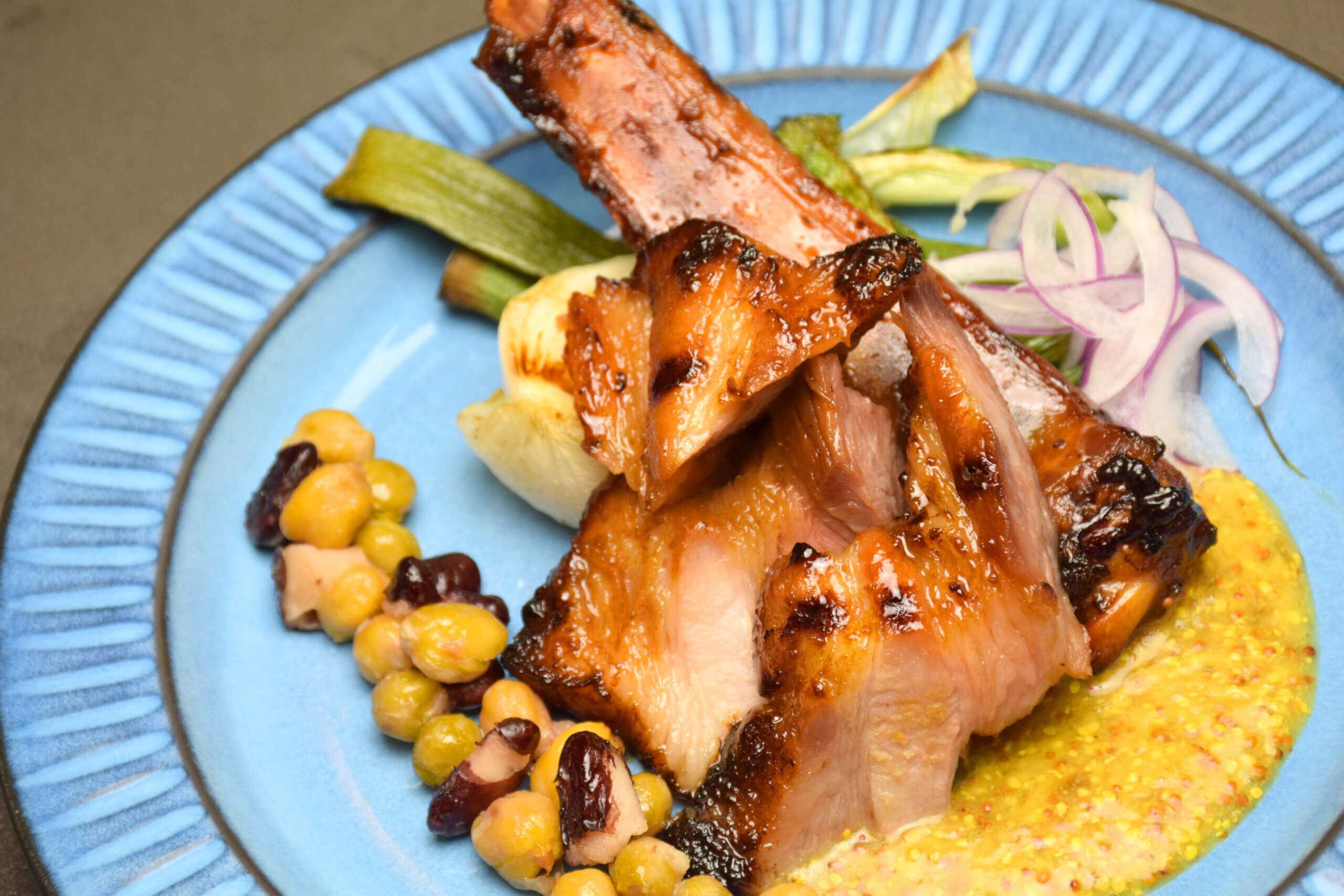 スペアリブと春野菜のグリル 中華風ハニーマスタード