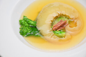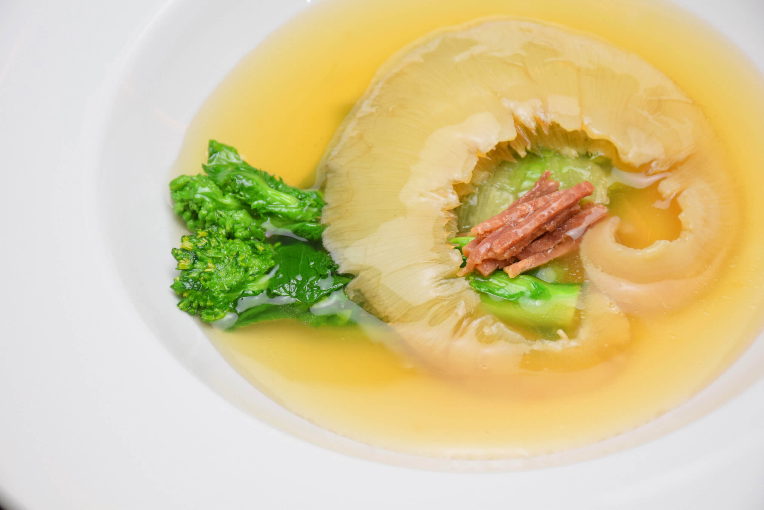 フカヒレの姿を贅沢に使用し、金華ハムとともにじっくり蒸し上げた広東式の上品なスープ。