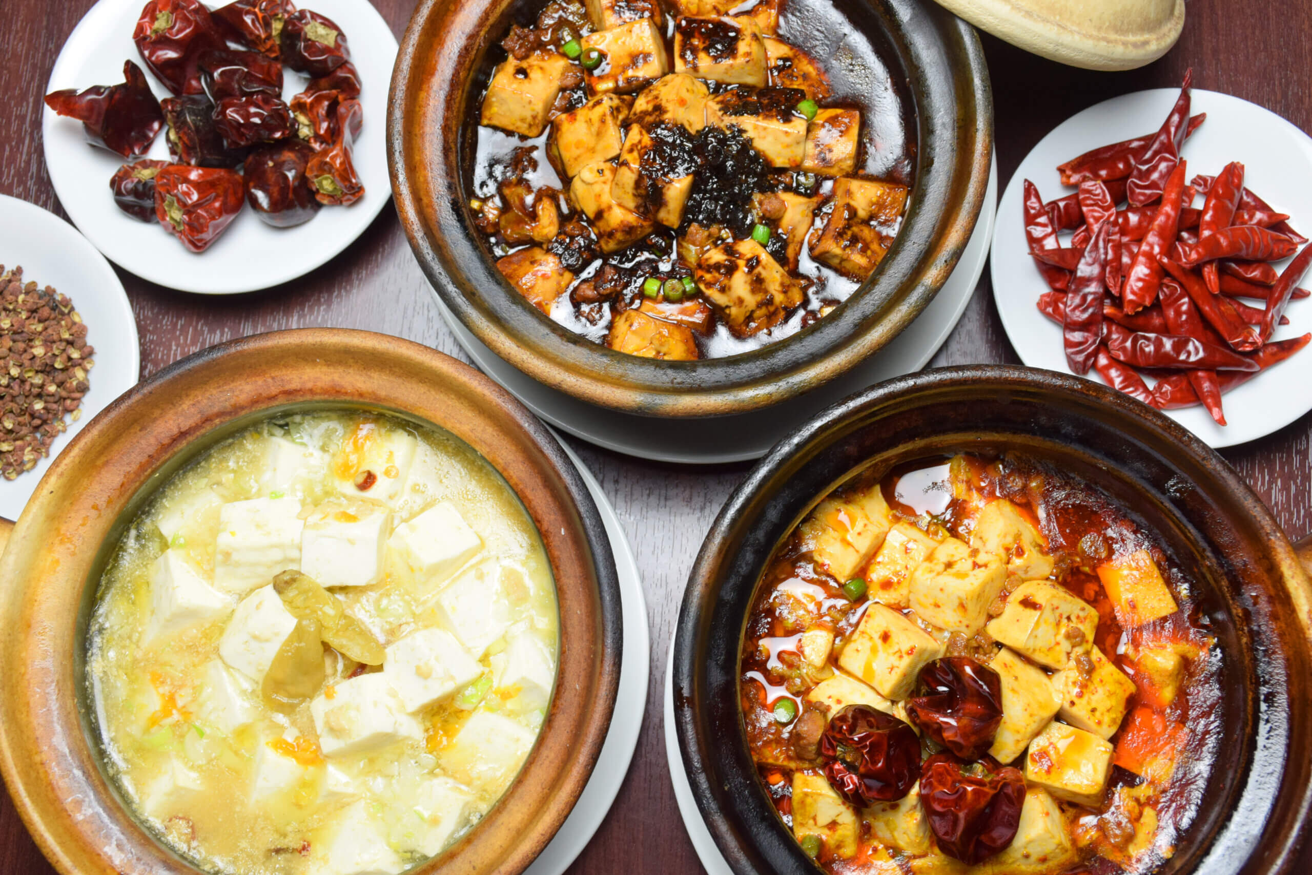 辛さの個性を楽しむ、3種の麻婆豆腐。