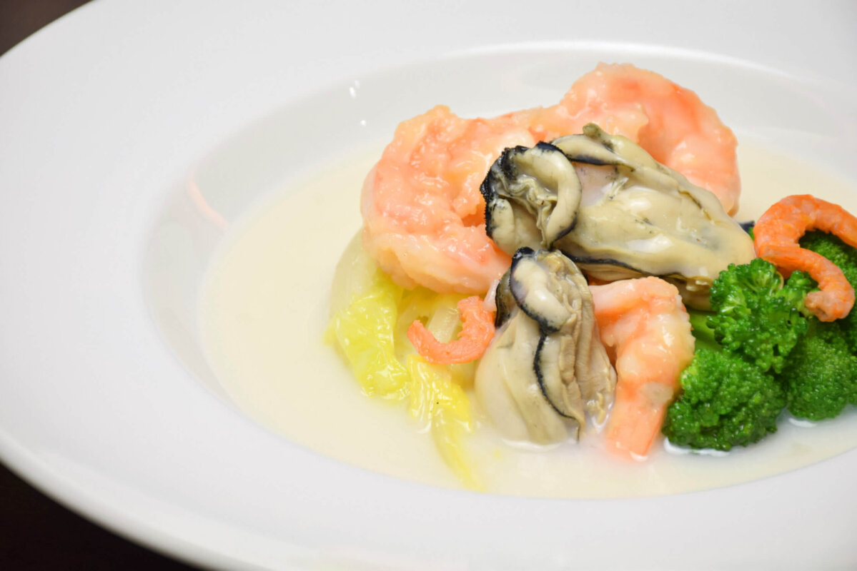 牡蠣と大エビ白菜の干し蝦香るクリーム煮込み